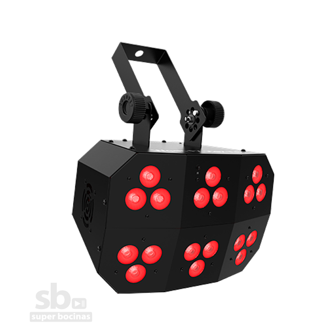 La luz de efecto multiusos funciona como un efecto de persecución, anteojera o luz de lavado